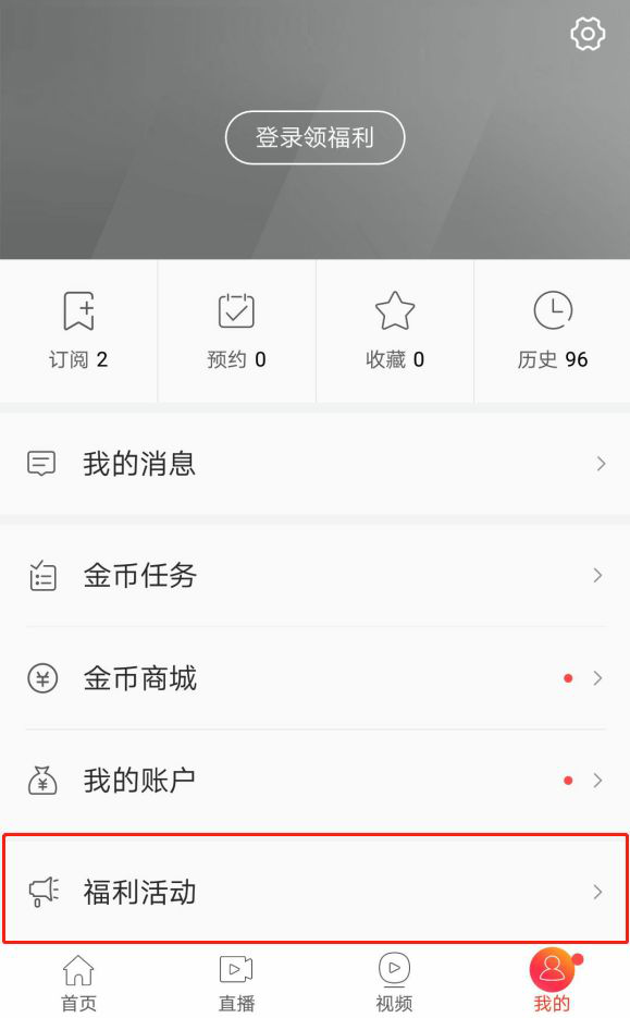 方法2:点击【我的】按钮,选择【福利活动】