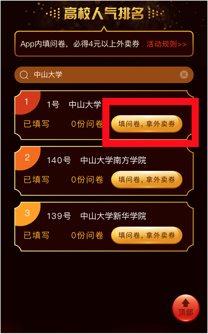 ③点击“填问卷,拿外卖券”