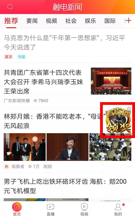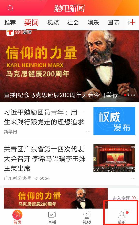 方法1:①点击“触电新闻”APP界面右边的浮标